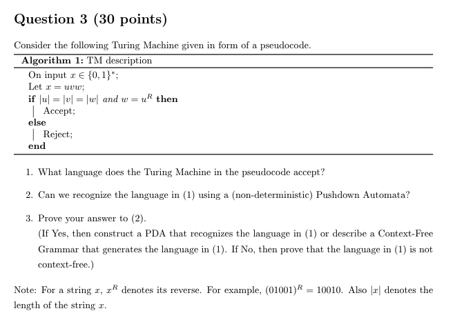 Solved Question 3 30 Points Consider The Following Turing Chegg Com